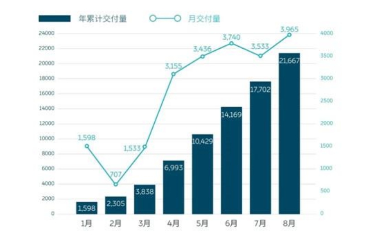 具体来看,蔚来ES8在8月份共计交付1125辆,蔚来ES6共计交付2840辆,同比上涨了58%。截至目前,蔚来2020年累计销量为21667台,在8月份以前,蔚来ES6已连续10个月蝉联纯电SUV销量冠军。从蔚来ES6现在的表现来看,大概率将继续蝉联这一成就了。